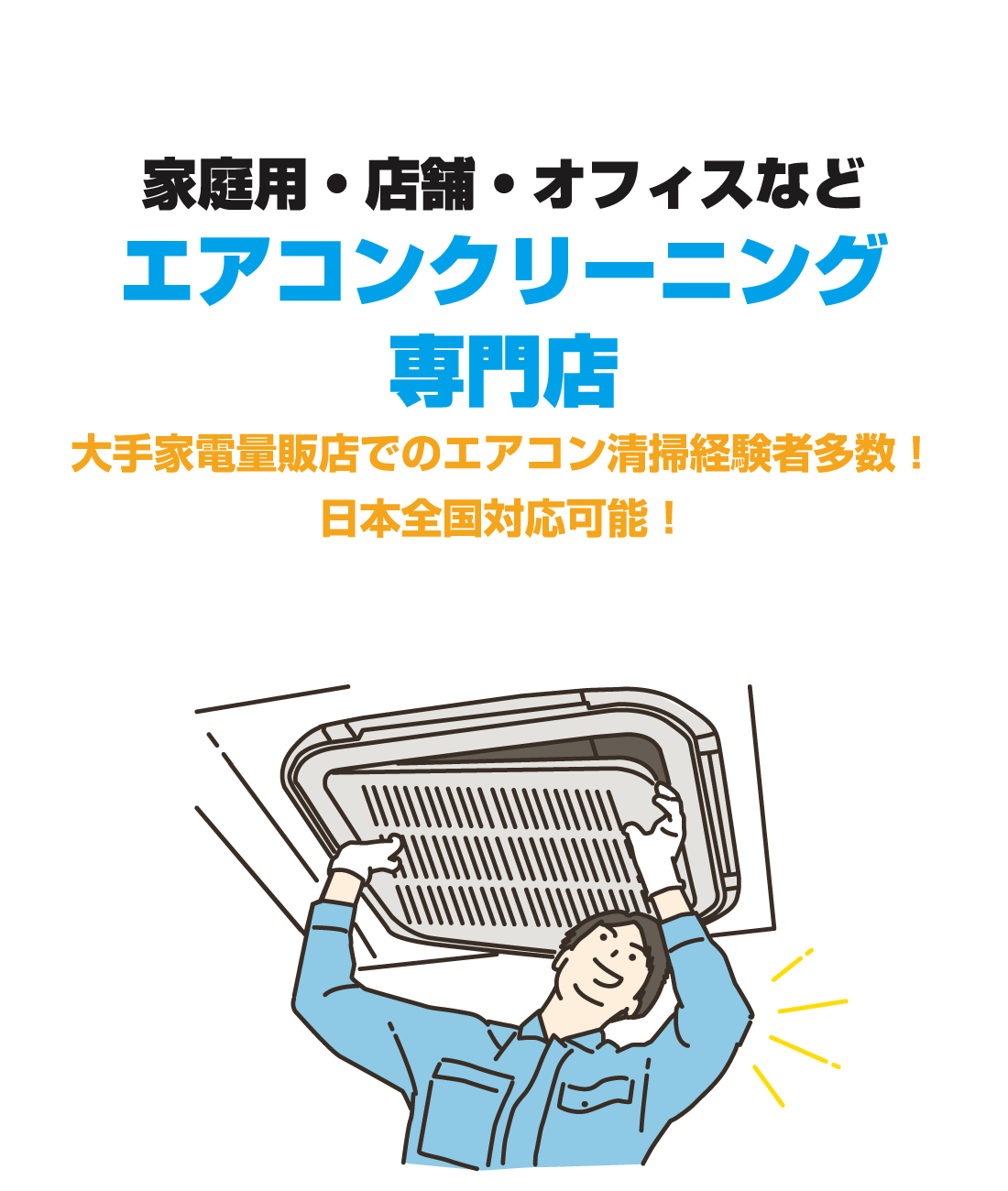 大手家電量販店でのエアコン清掃経験者20名ほどの協力業者様のご協力いただいております。